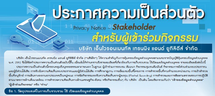 ประกาศความเป็นส่วนตัวสำหรับผู้เข้าร่วมกิจกรรม (Privacy Notice – Stakeholder)